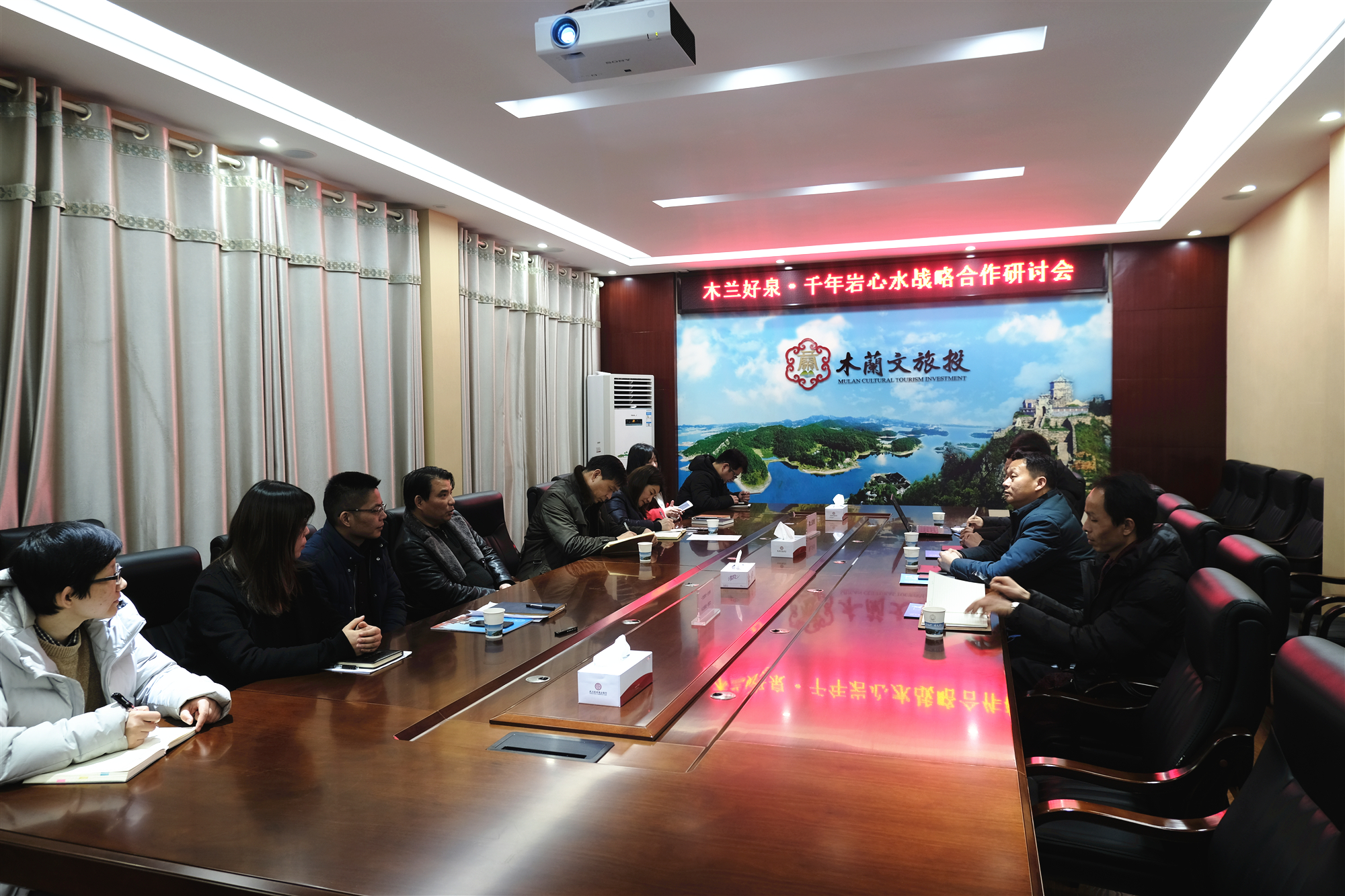 而后文旅投組織召開(kāi)了木蘭好泉-千年巖心水戰(zhàn)略合作座談會(huì)議,文旅投集團(tuán)董事長(zhǎng)胡述翔、總經(jīng)理王光華、文創(chuàng)公司執(zhí)行董事高輝等領(lǐng)導(dǎo)參會(huì)。會(huì)議期間,大家積極建言獻(xiàn)策,暢所欲言,共謀發(fā)展,會(huì)議一致認(rèn)為將三座山的千年巖心水和木蘭有禮這個(gè)黃陂區(qū)政府旅游特色商品公共品牌有機(jī)融合,能形成強(qiáng)大的合力,對(duì)品牌的推廣發(fā)揮積極的效應(yīng),并力爭(zhēng)兩年立足黃陂,三年進(jìn)軍大武漢。雙方在友好的氛圍中達(dá)成了“品牌共建,資源共享,合作共贏,精準(zhǔn)幫扶”的戰(zhàn)略合作共識(shí)。