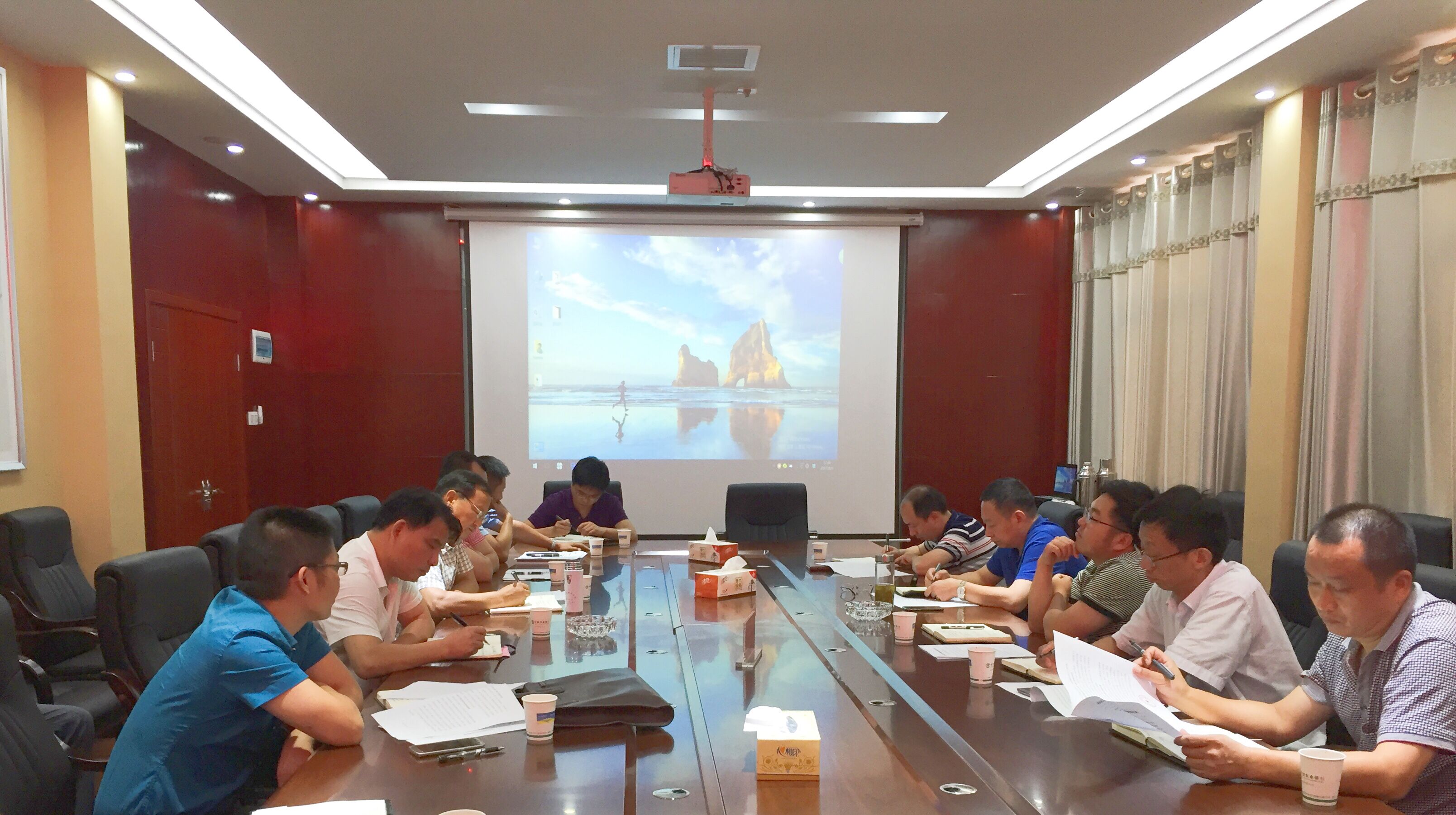 梅局長一行首先觀看了非遺小鎮(zhèn)的宣傳短片,看完短片后梅局長表示:非遺小鎮(zhèn)項(xiàng)目規(guī)劃設(shè)計(jì)宏偉,讓人震撼,同時(shí)又具有豐富的文化內(nèi)涵,讓人期待。小鎮(zhèn)公司副總高輝具體介紹了項(xiàng)目整體概況和前期的進(jìn)展情況,并提出了項(xiàng)目落地建設(shè)的瓶頸問題。國土局規(guī)劃科、用地科負(fù)責(zé)人對目前城市規(guī)劃的編制工作、用地政策及提出的節(jié)點(diǎn)問題予以了說明和解答。區(qū)文旅投董事長胡述翔對梅局長一行的到來表示了感謝并希望國土局大力支持非遺小鎮(zhèn)項(xiàng)目,爭取我區(qū)重大項(xiàng)目早日落地建設(shè)。梅局長表示區(qū)國土局會迅速將項(xiàng)目區(qū)的土地“兩規(guī)”進(jìn)行編制并上報(bào),同時(shí)還對國土局工作人員提出了“三多”要求,即:多服務(wù),多交流、多走動,以加速推進(jìn)項(xiàng)目建設(shè),確保非遺小鎮(zhèn)項(xiàng)目一期工程如期開工。